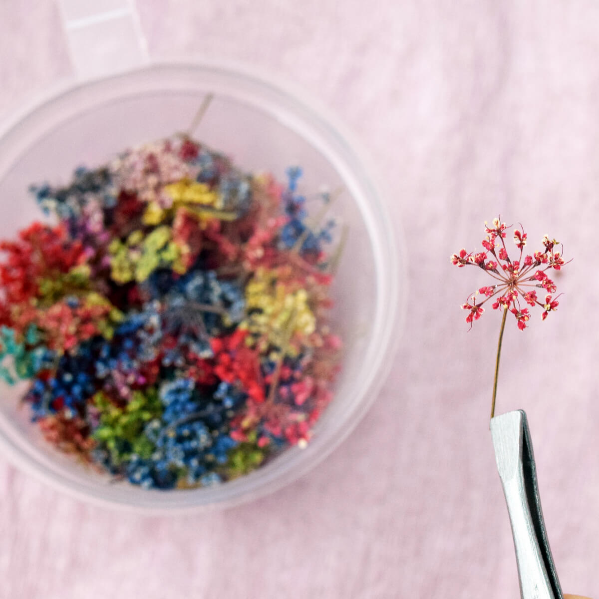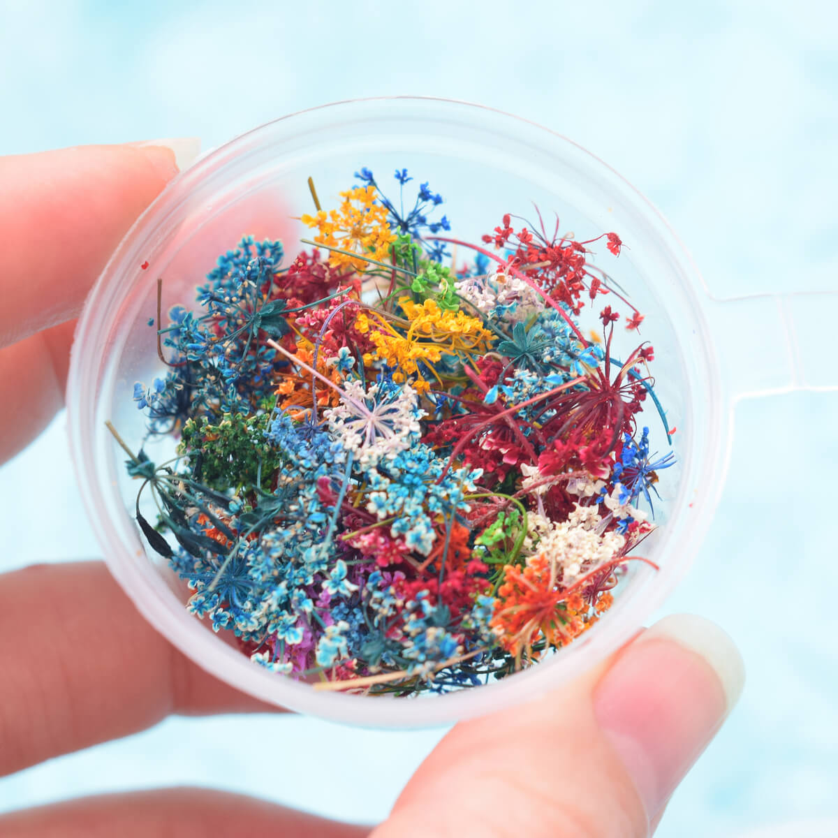 Снить - мініатюрні суцвіття квітів. Пофарбовані через стебло, не стабілізовані.