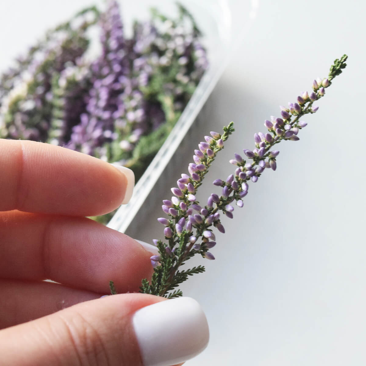 Об'ємно висушені гілочки вересу, 30 гілочок в контейнері.